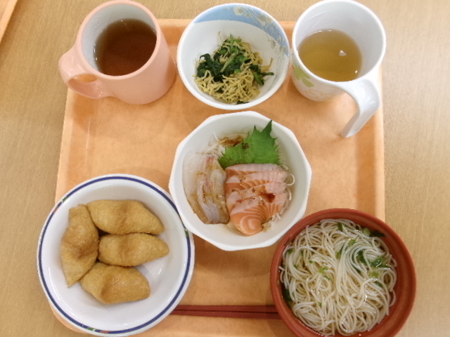 12月誕生日会おめでとうございます! 投稿日 2026年1月14日 著者 gongensou02 カテゴリー お知らせ 12月生まれの方お誕生日でした。おめでとうございます!12月は5名の方お誕生日です。 柚子いなり寿司・刺身(鯛・サーモン)・錦糸和え・そうめん汁・リンゴジュース