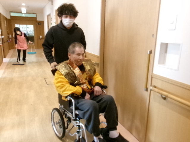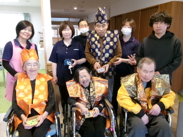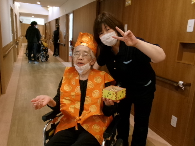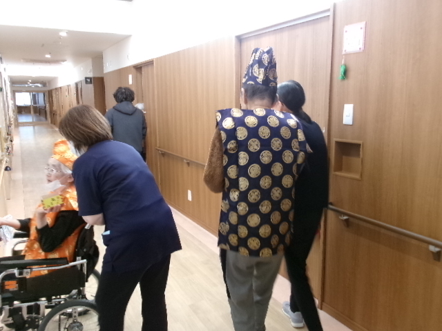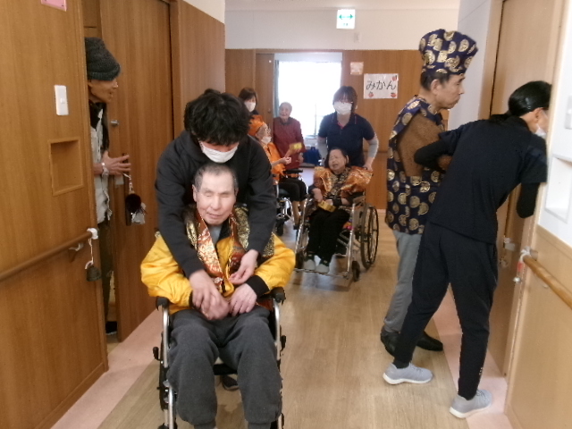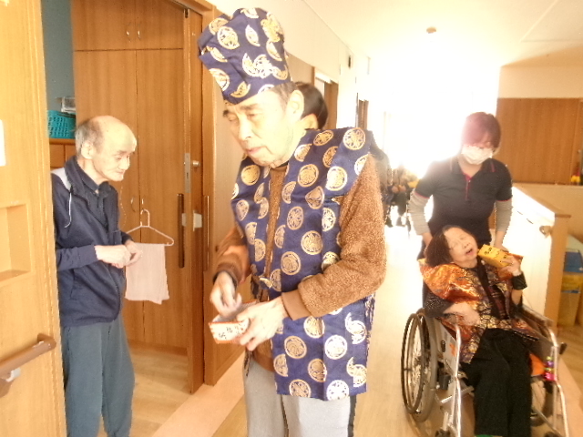 年男年女の方により豆まきです。「鬼は外~。福は内~内~」今年はすべてウマくいく🐎